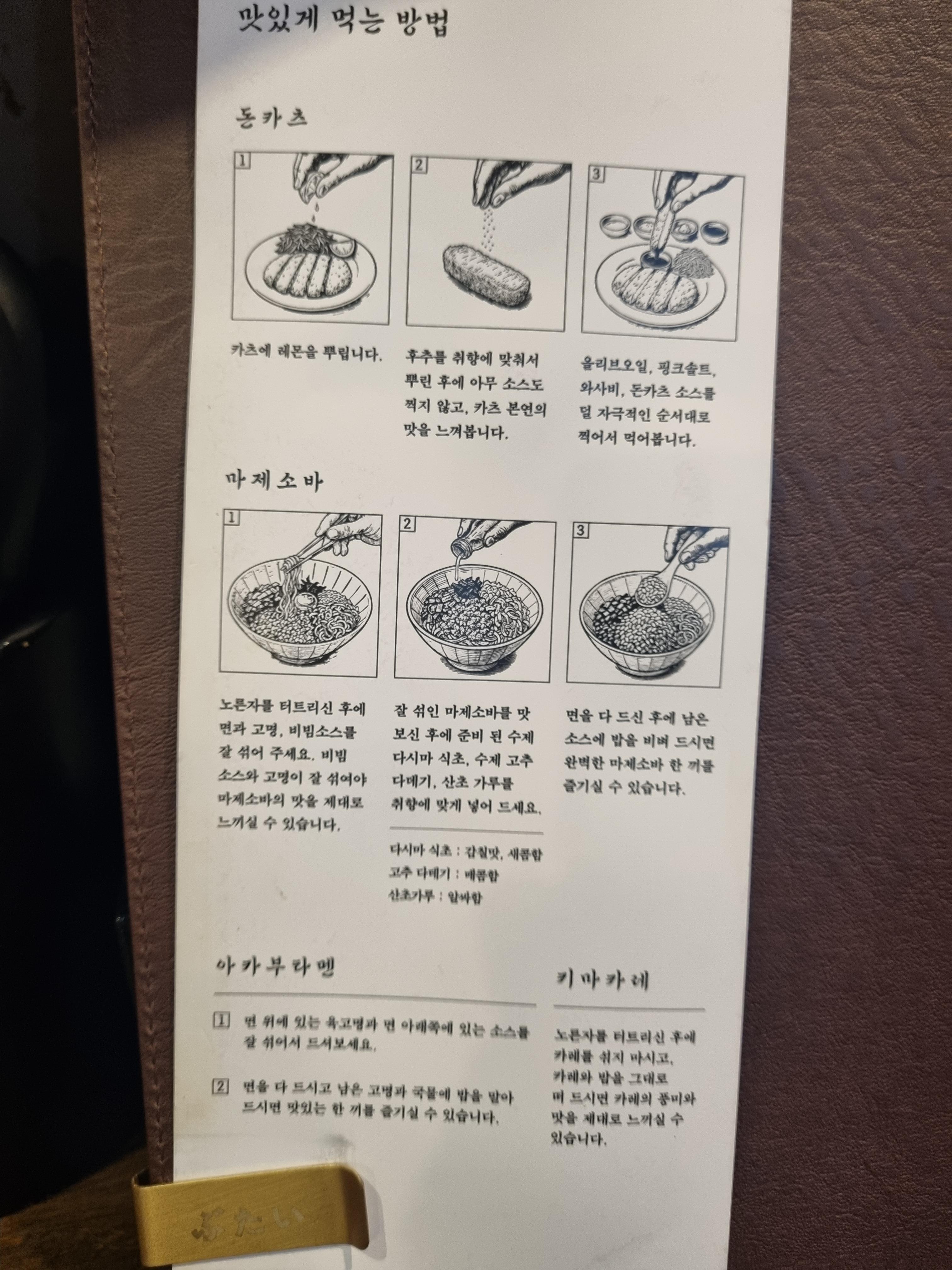 여긴 돈까스, 마제소바, 카레, 가츠산도, 마끼까지 메뉴가 다양해.