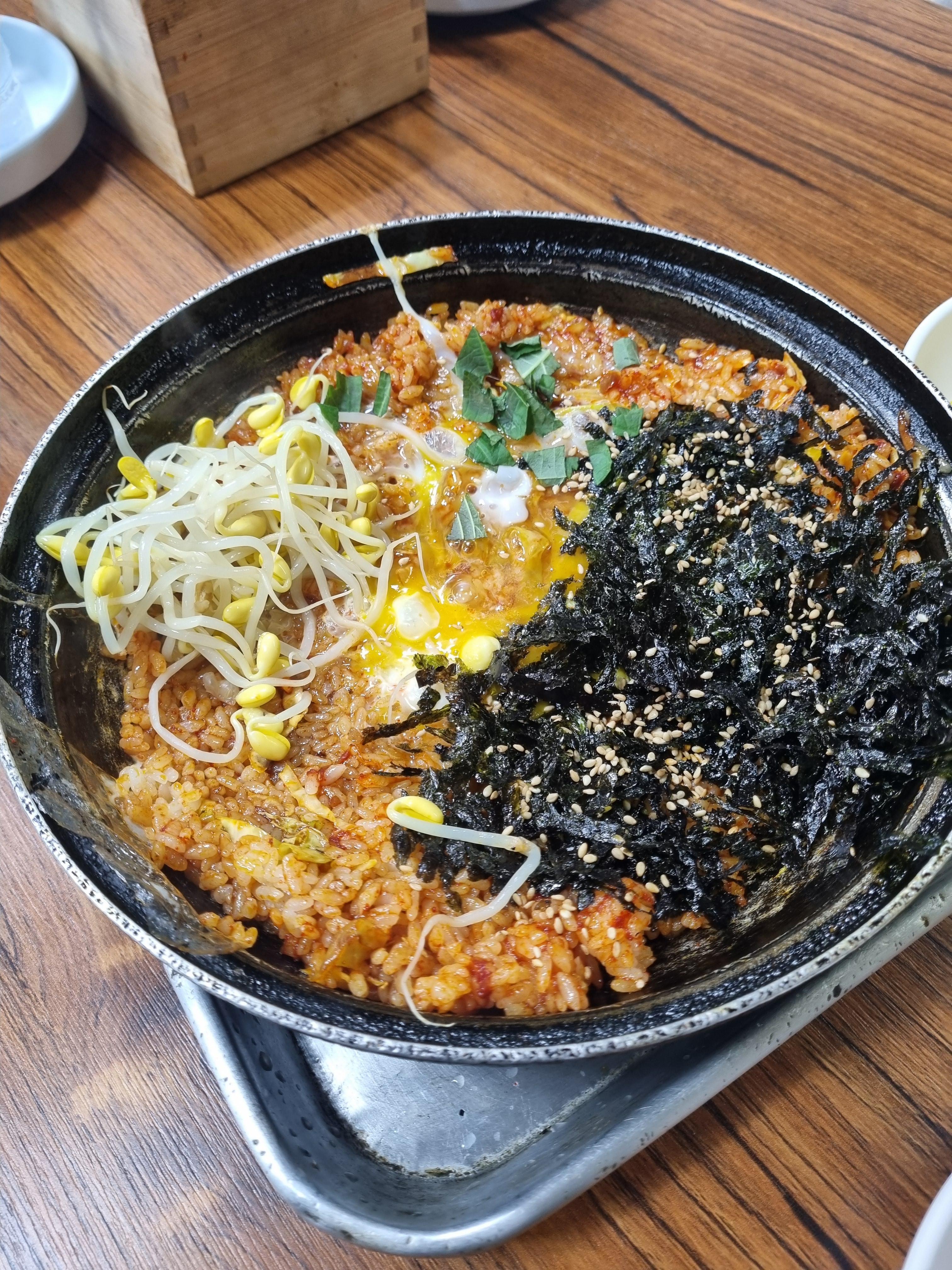 콩나물, 깻잎, 김이 들어가서 은은한 향도 좋더라. - 볶음밥 : 추억의 분식집 스타일 볶음밥.
