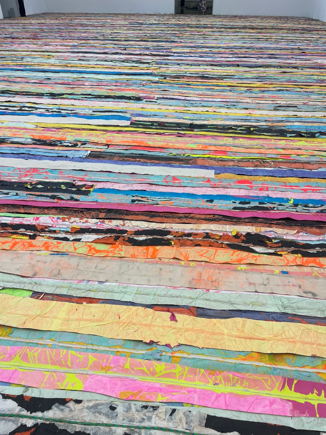 알록달록한 색이 펼쳐진 대형 작품이 나를 맞이했어.