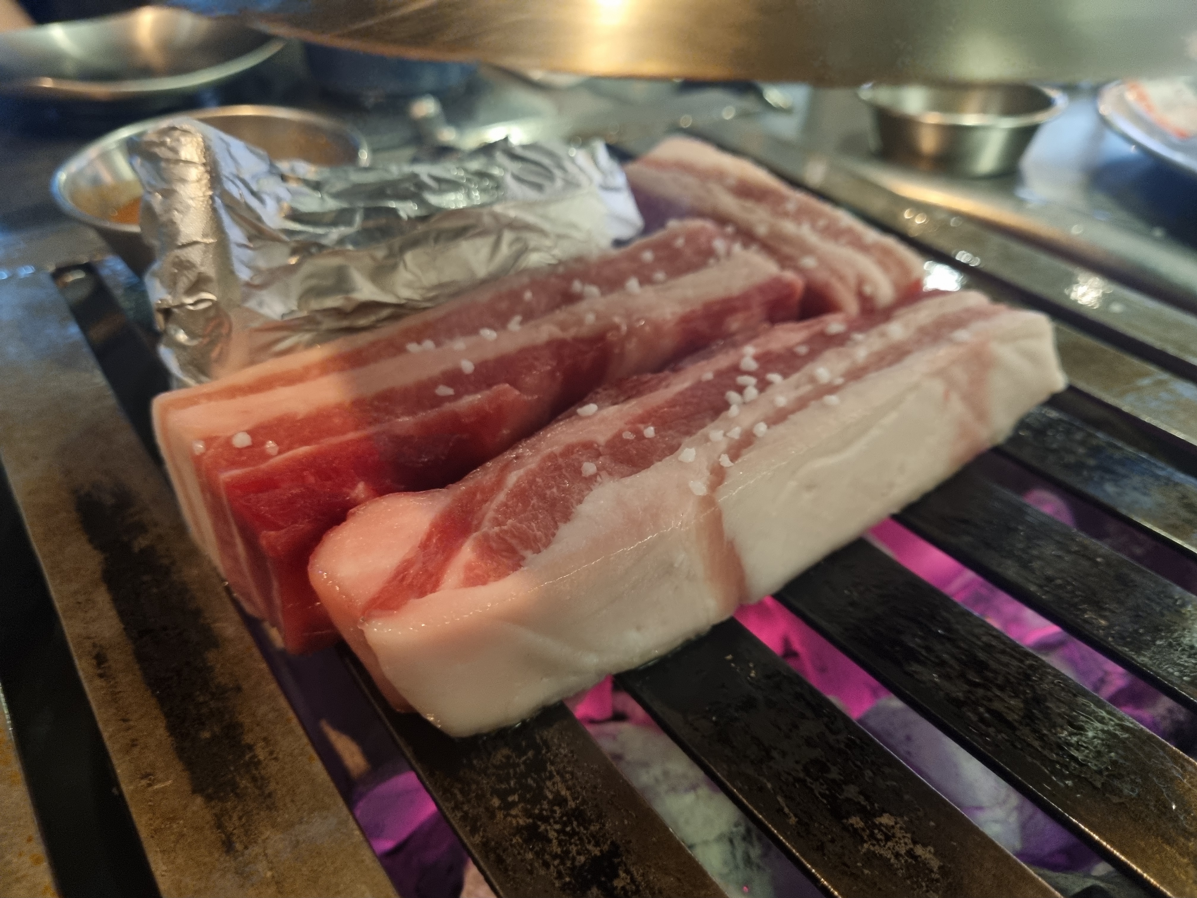 삼겹살은 무조건 처음에 2인분 이상부터 시켜야 해. 그다음부턴 1인분 가능!