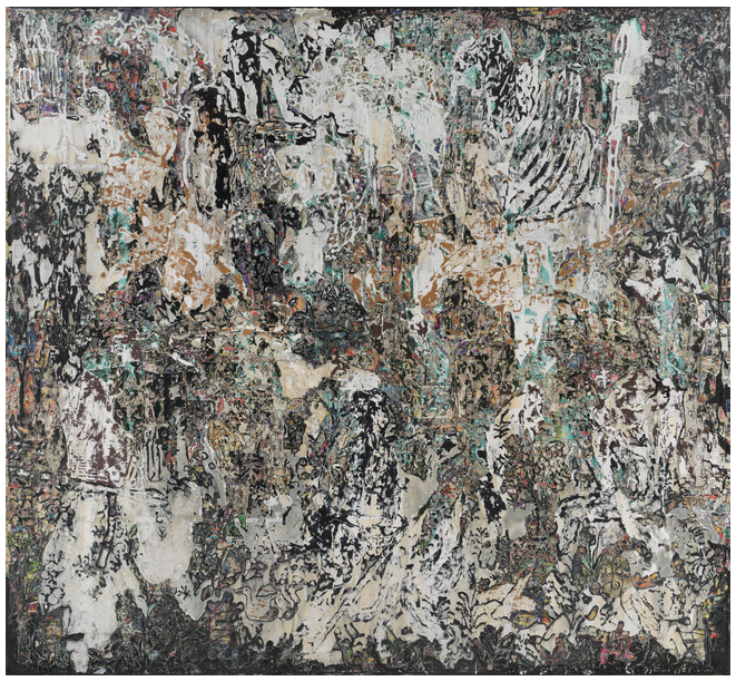 • 도시 광고지·포스터·산업용 종이 등 여러 쌓고 긁은 ‘소재 조각 작업’